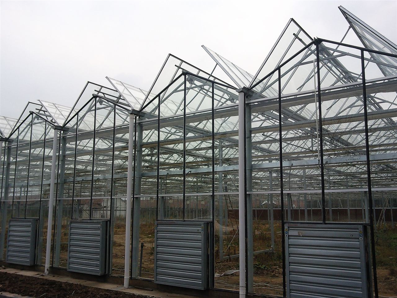 El espacio es amplio:El espacio interior del invernadero de vidrio es amplio, lo que favorece las operaciones mecanizadas y la instalación y disposición de equipos grandes,haciendo que sea conveniente para el cultivo y la gestión de los cultivos.